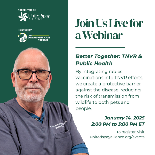 By integrating rabies vaccinations into TNVR efforts, we create a protective barrier against the disease, reducing the risk of transmission from wildlife to both pets and people. This added layer of protections has garnered the attention and support of public health officials across the country. In this webinar, we’ll also explore how TNVR programs can help prevent the spread of toxoplasmosis by community cats.